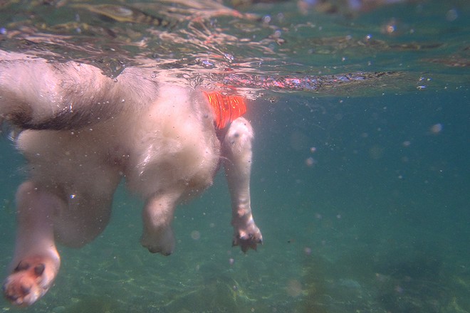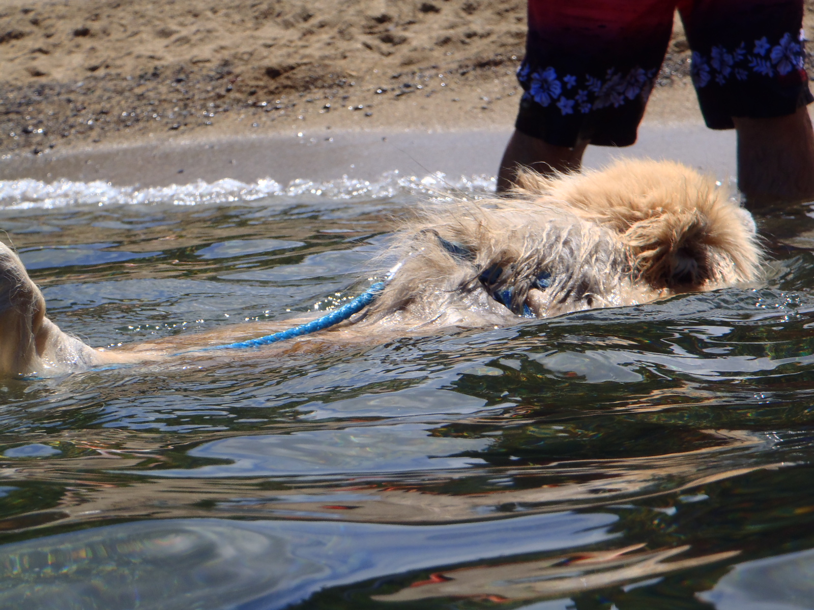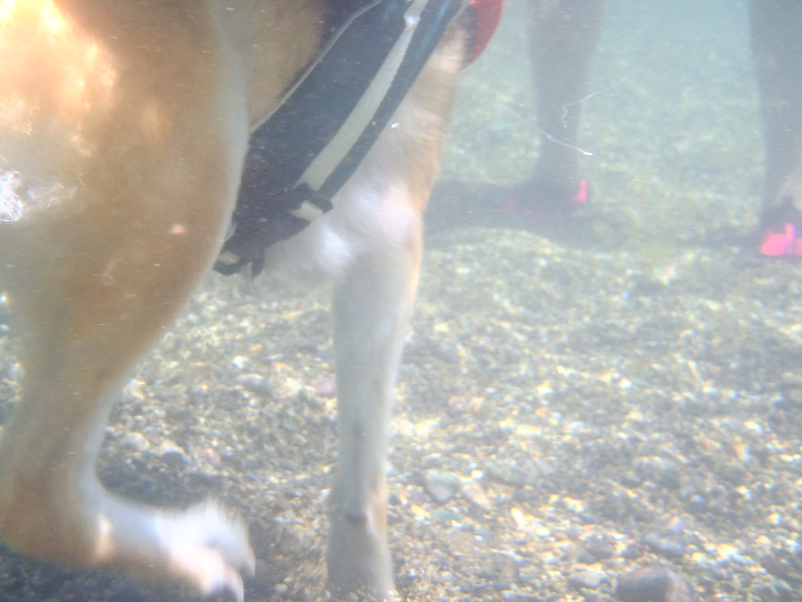 ふく君の犬かきの様子を撮ろうとしたら、すでに脚がついてました(笑)