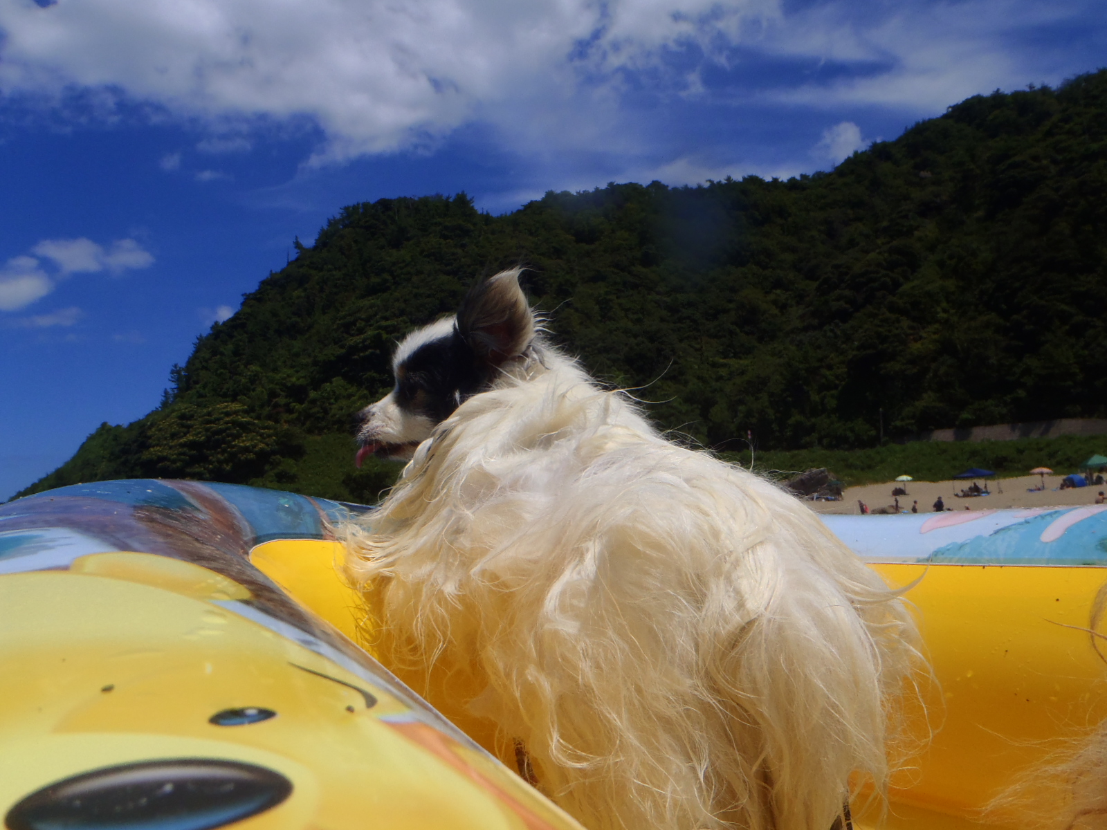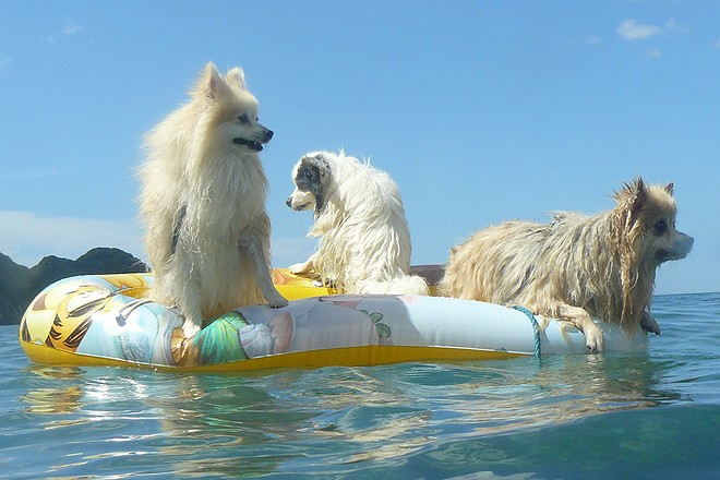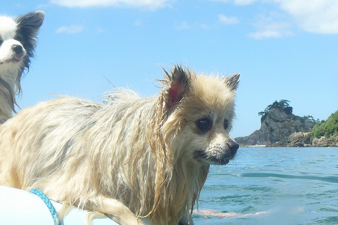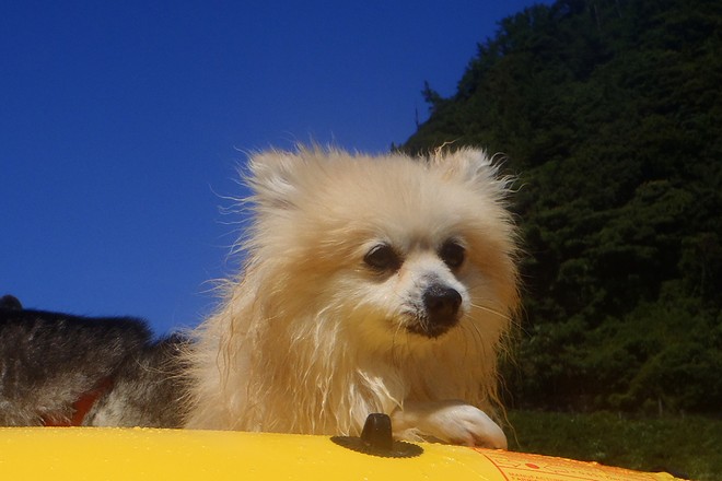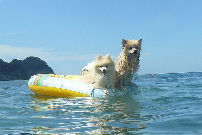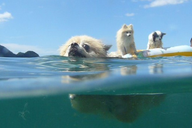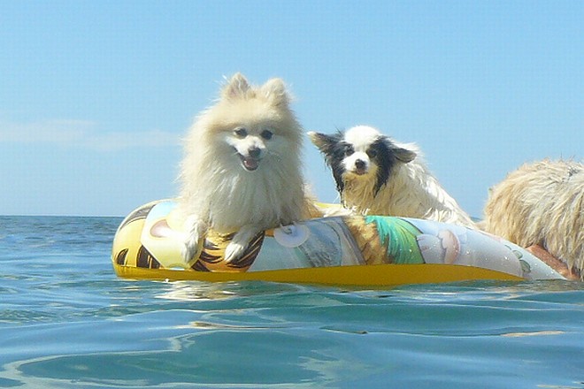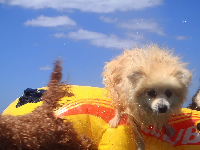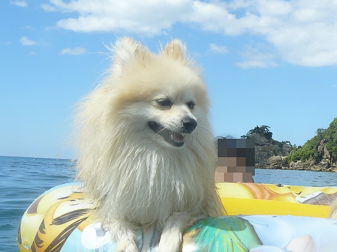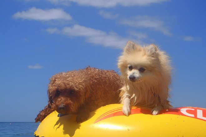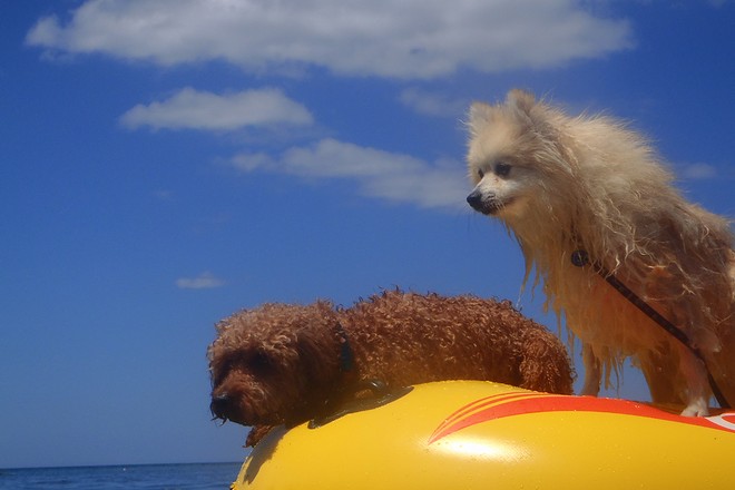 パピの視線の先にはドヤ顔でサーフィンUSA中のトイプー君がいてました。