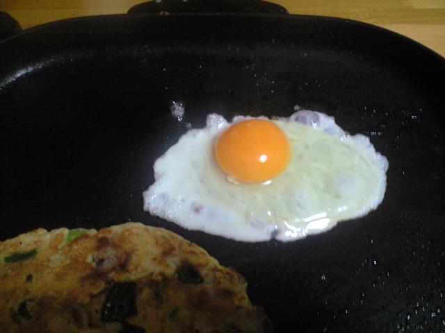 ここで目玉焼きを作ります。