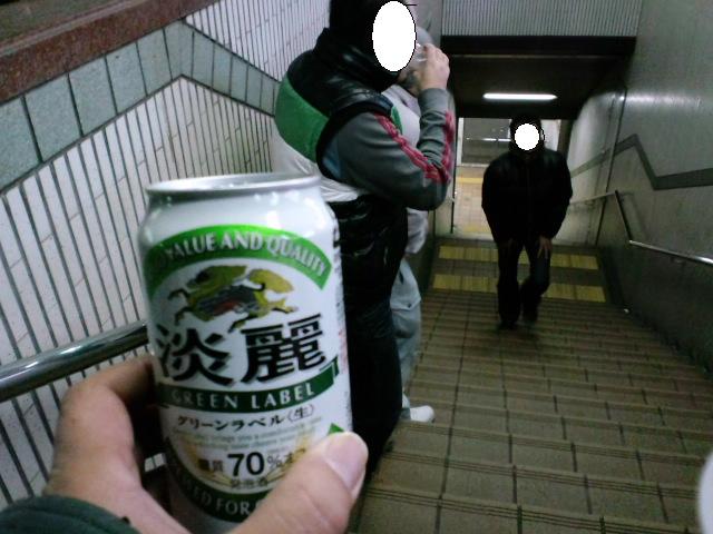 素人は寒空の下では熱燗に走りたがりますが、俺みたいに玄人になると寒空でもビール。発泡酒です(笑)