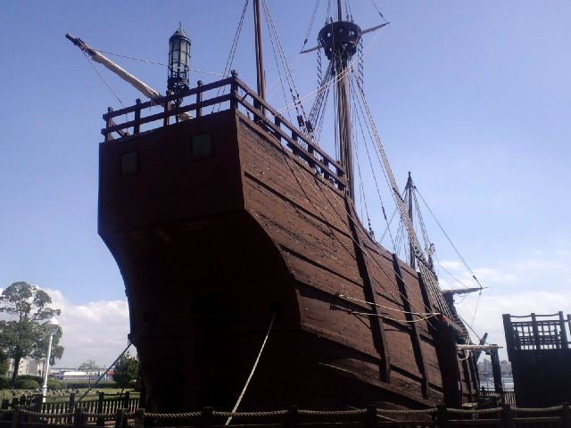 さてこのメリケンパークにはサンタ・マリア号のレプリカ船が展示されています。