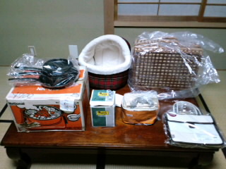 そうです、真ん中のはワンコベッドです。