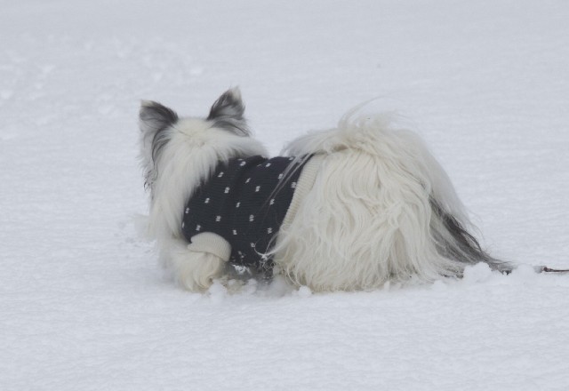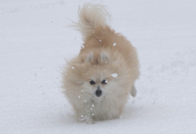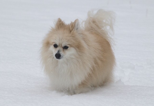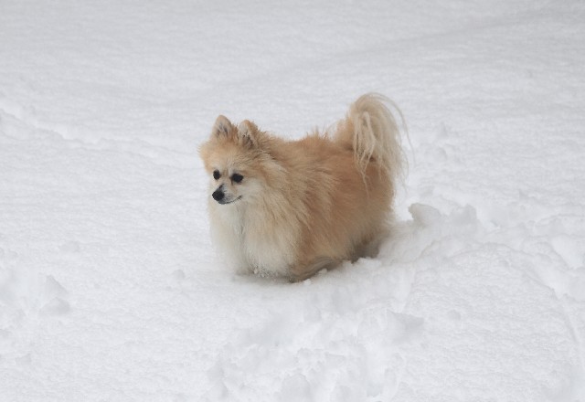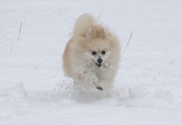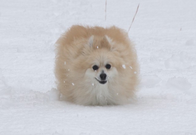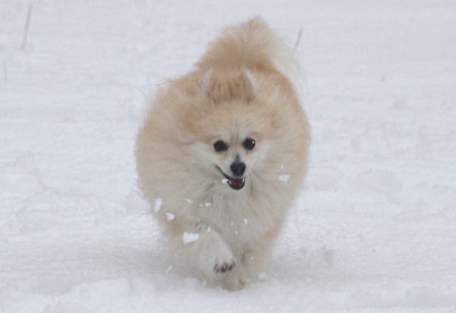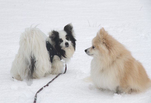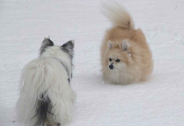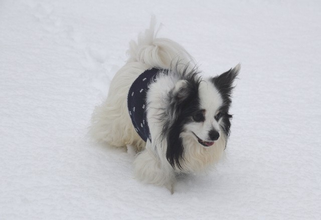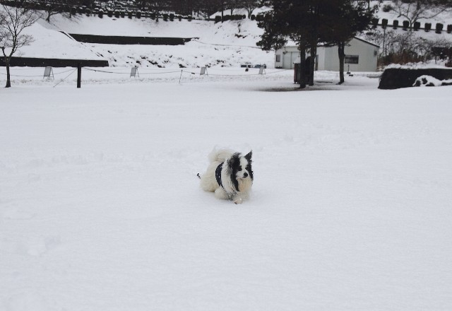 ジョンは雪でも爆走、パピはヨタヨタ歩きで対照的でしょ(笑)