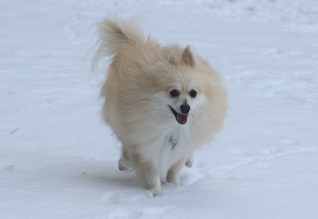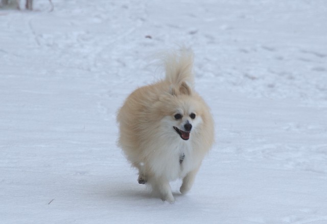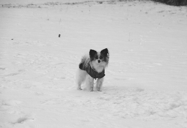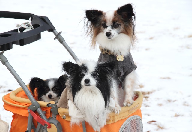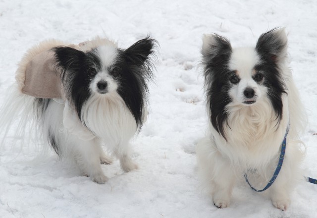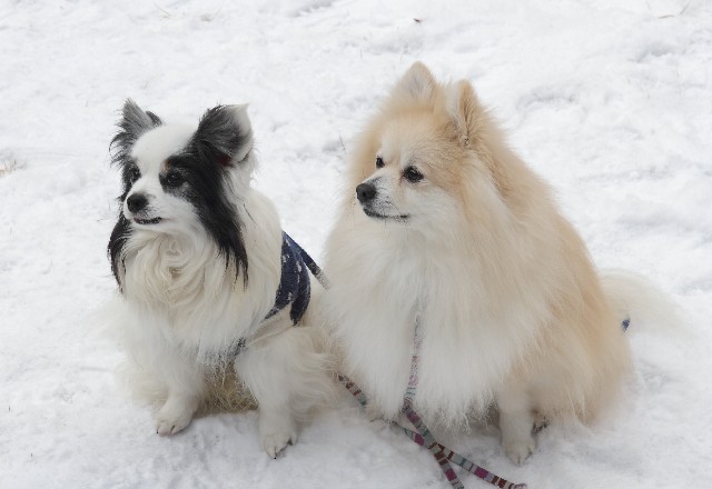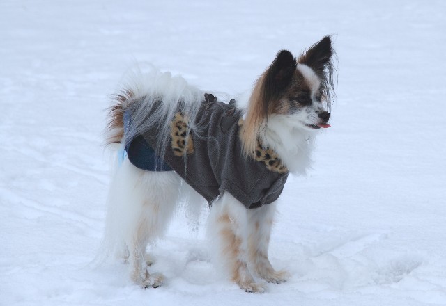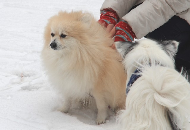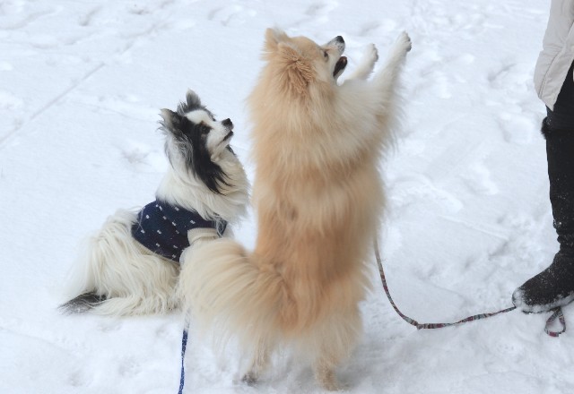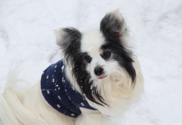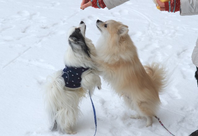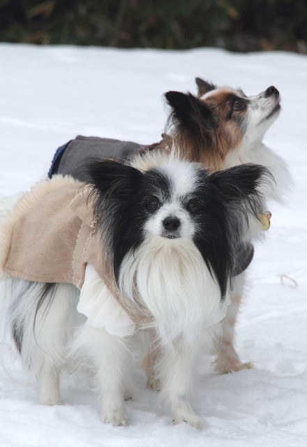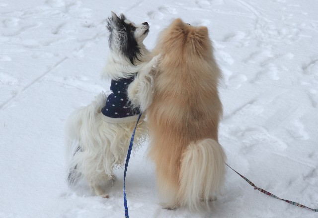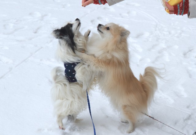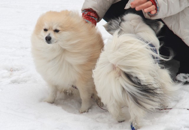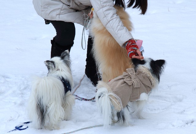 ①愛犬にかかっている雪を払う、優しいMティーユさん(仮名)