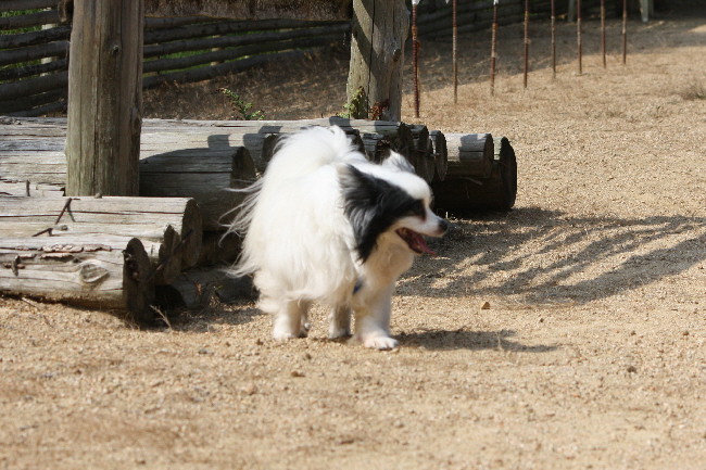 ジョンもパピもランに入ると一目散に走って行き、色んな場所の匂いチェックをするんですが、