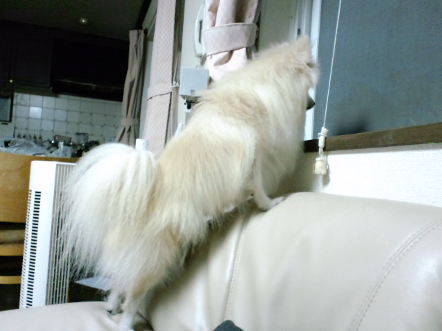 いつもこうして↓いつもジョンは外を覗いているんですけど、外から見ると上の様に見えるんですね。