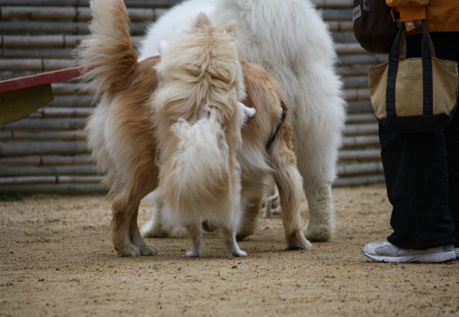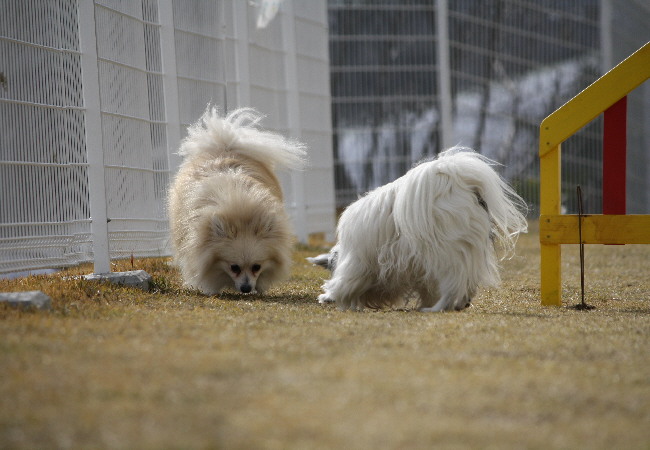 ジョンの動きに対して後ろのパピはずっと匂いを嗅いでいて動きがないですよね(^^;)