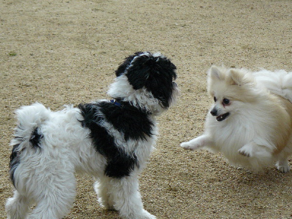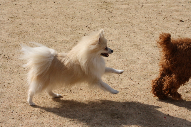 前にも一度あったトイプー君を追いかけるジョン