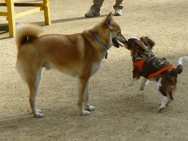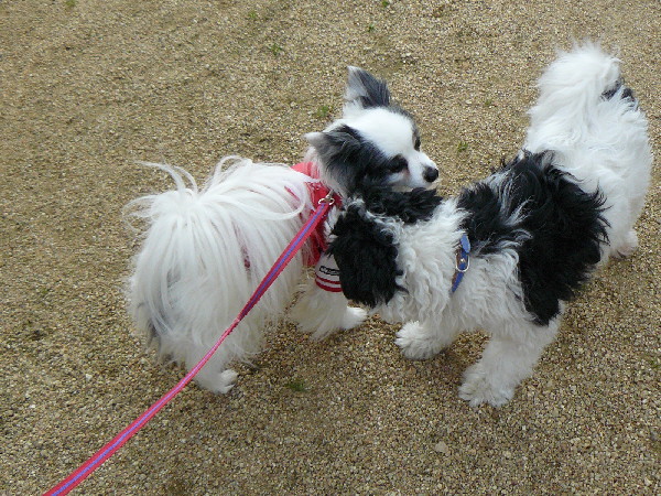 フク君と遊んでいるこのキャバリア君、ずっと尻尾ふりふりで凄く楽しかったようです。