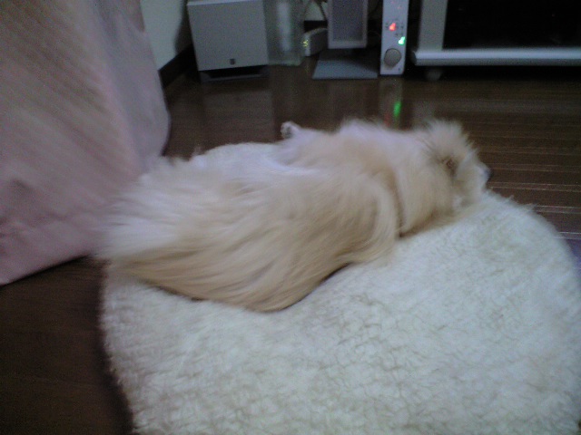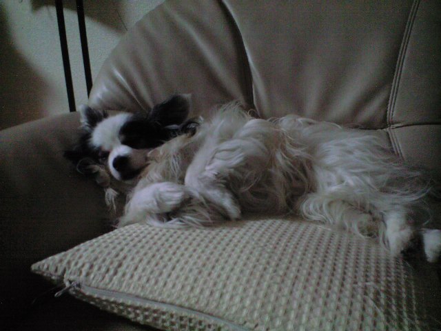 パピはこうしてソファの上…と言うかクッションの上で寝ています。