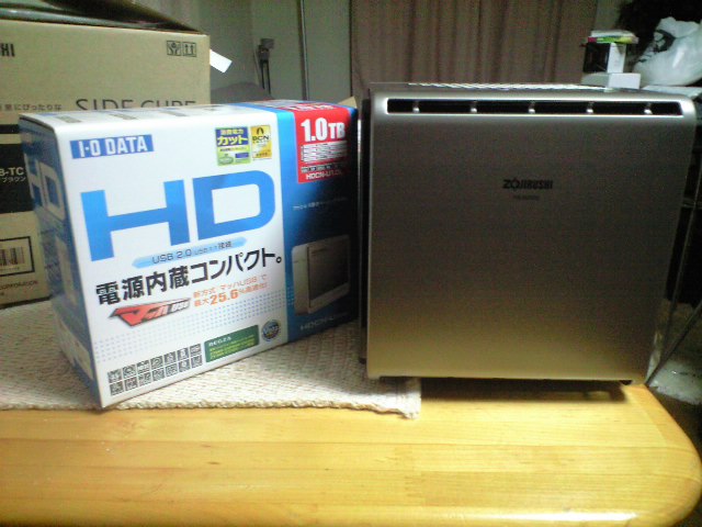 外付けハードディスクと空気清浄機。