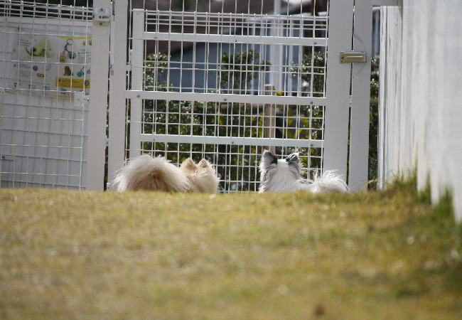 小ドッグランに誰もいなくなったので、若達を抱きかかえて小ドッグランに移動しました。