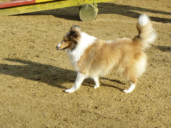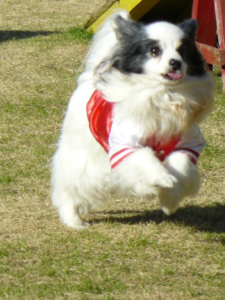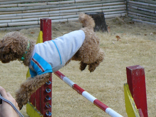 前にも書いた様にこのナナちゃんはまだパピーなんですけど、アジの素質充分ありで教えなくてもドッグウォークをやったりします。ジャンプも実に軽やかにこなします。