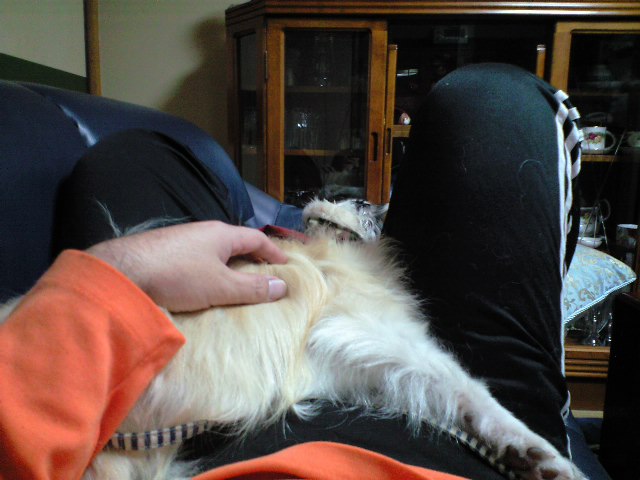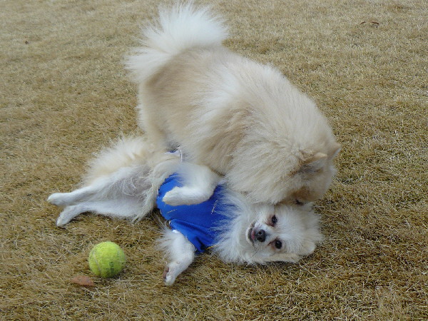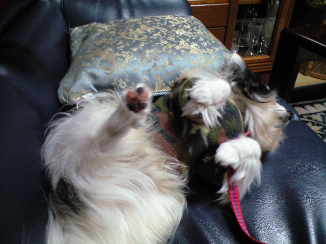 ちなみにこの日はポン太君のパパさんにもお腹を見せて撫ぜて貰っていたんですけど、ある拍子にパパさんに向って吠えていました(^^;)