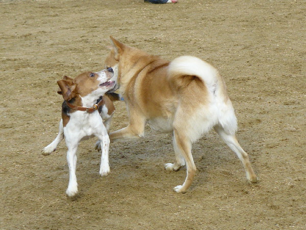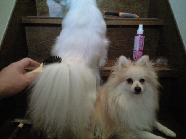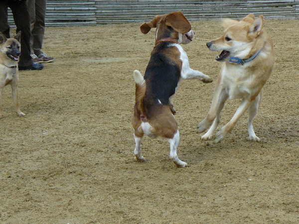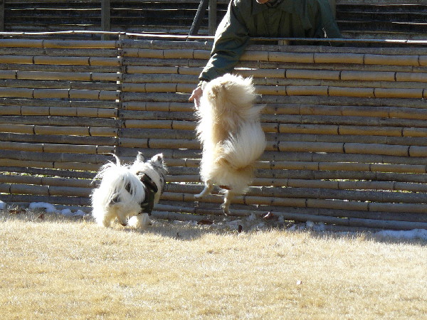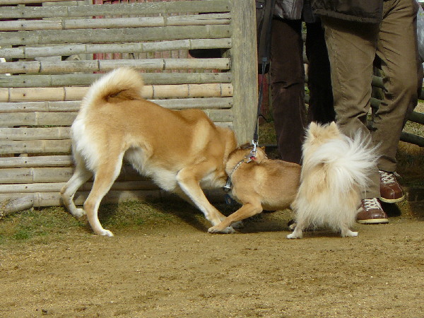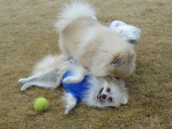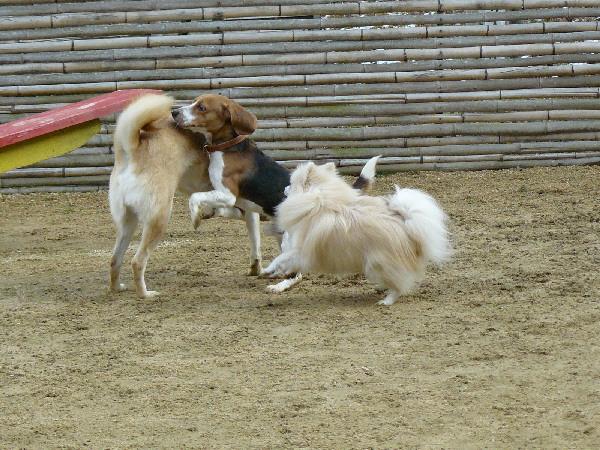 ジョンが遊んでいる時に自分がパピをダッコしていたので、ヤキモチを妬いたジョンがパピを怒っているようでした。