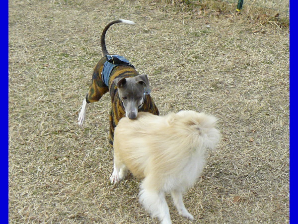ジョンもパピもあっちに行ったりこっちに来たりと楽しそうに走り回っていました(^-^)