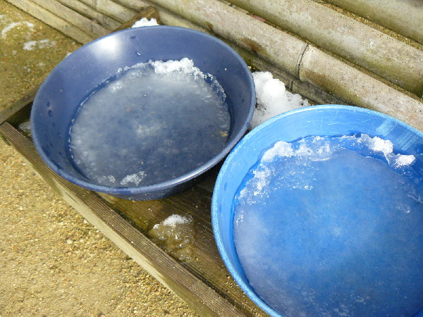 ↓大ドッグランの水が凍っていました ↓小ドッグランには誰かが作った雪だるま