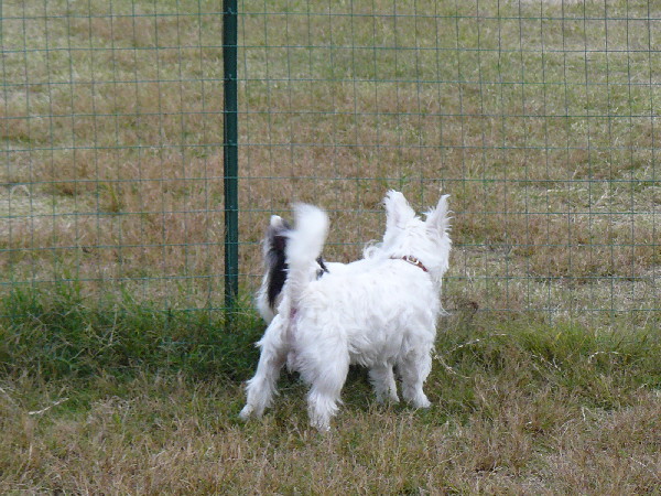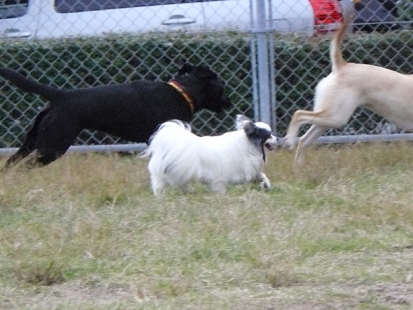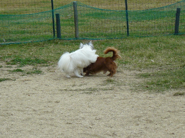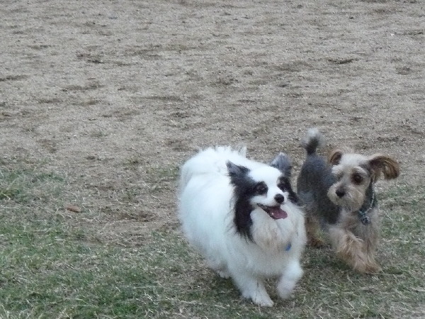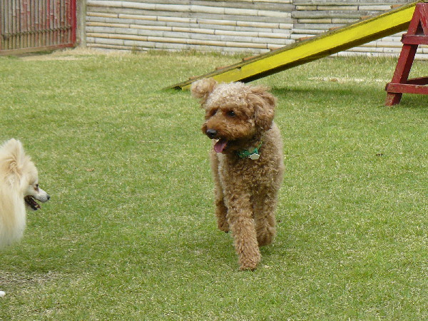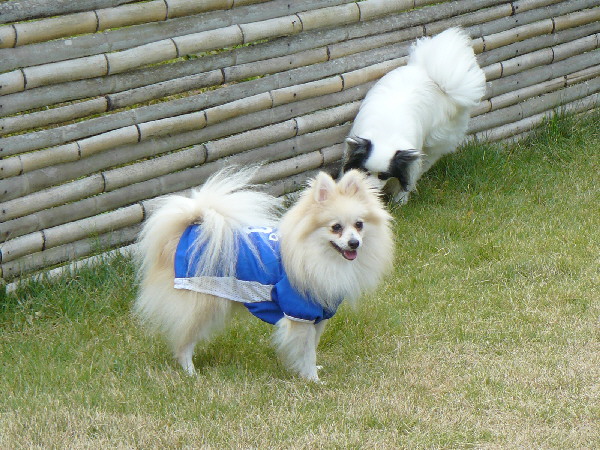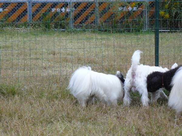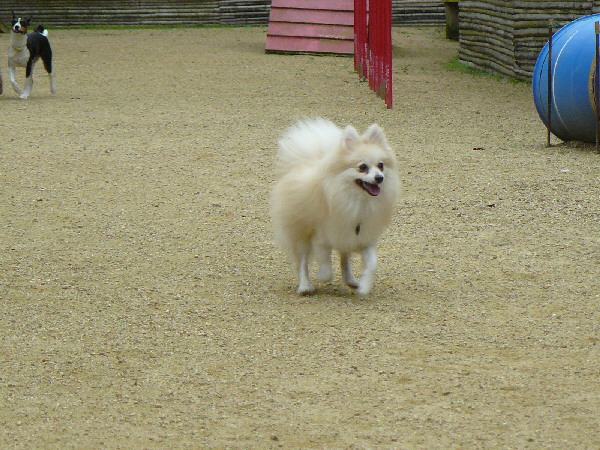 こうして周りが走っていてもあくまでもマイペースなパピですが、この日2度ほどラン内で喧嘩があった時は、沢山のワンコが吠え集まっている所に何故かパピも走って向かっていってました(^^;)