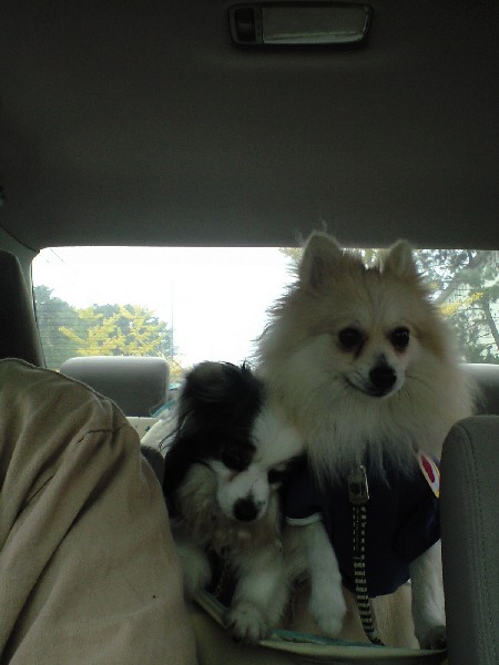 普段の勤務より早く終るので帰宅後、ジョンとパピを車に乗せて動物病院へ行ってきました。