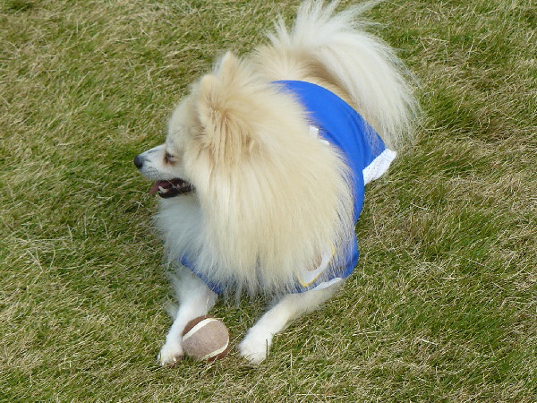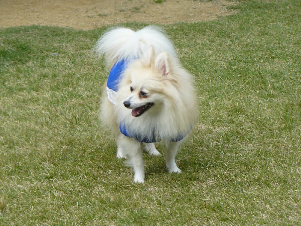 トリミング後にドッグランに行くというチャレンジャーな自分ですけど(笑)、服を着せたらそんなに汚れないだろうと思い連れて来たってのもあるんですけど、現地に着き服を着させるとブカブカ(^^;)