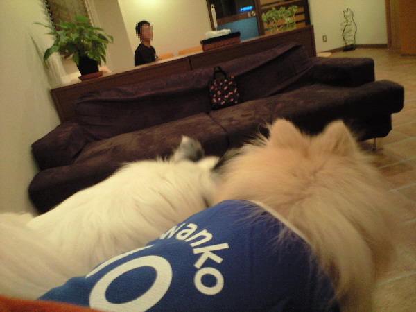 ちょうどジョンの爪も足裏の毛も伸びていたので処置をしてもらっている間はパピと待合室で待っていましたが…