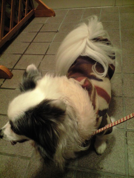 ポメはダブルコートだしもう少し冬本番になってからでいいかな?と、無抵抗なパピだけに着させています(笑)