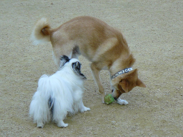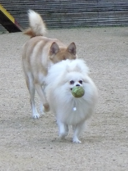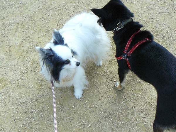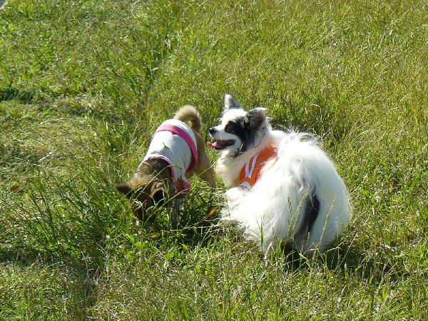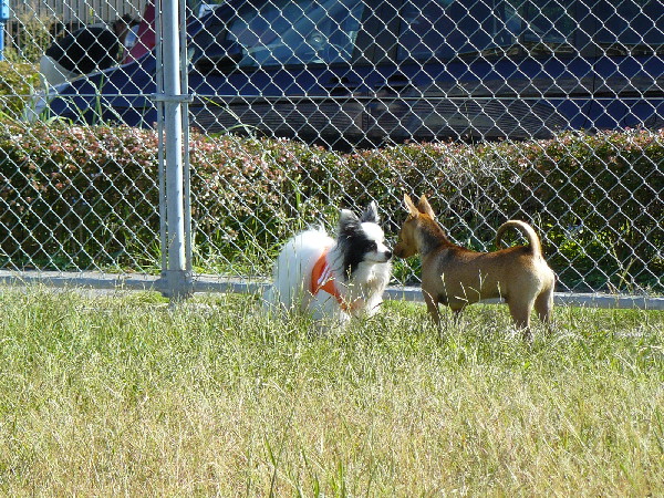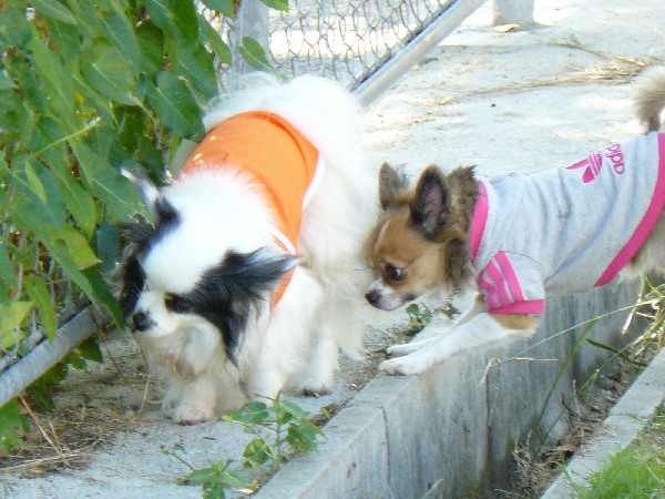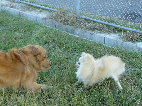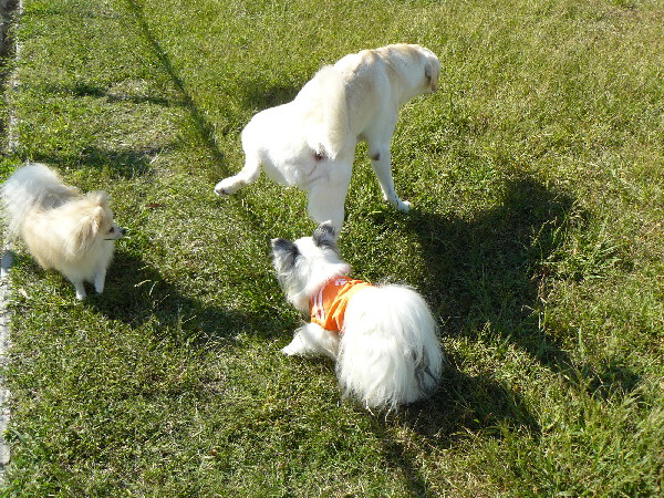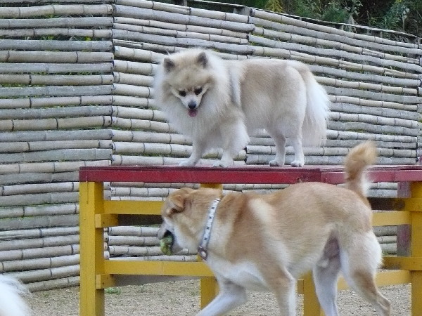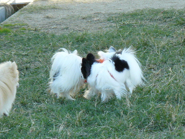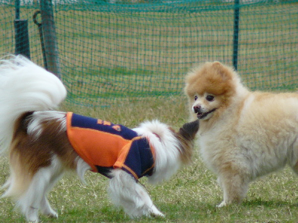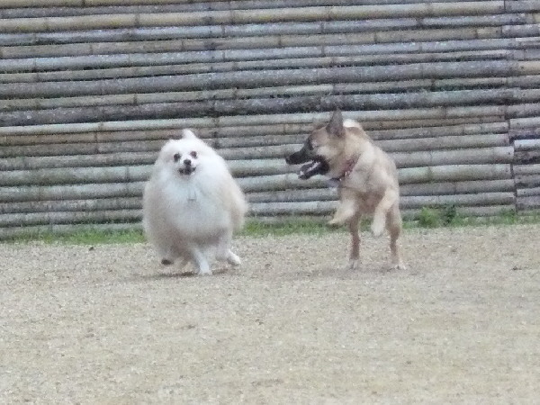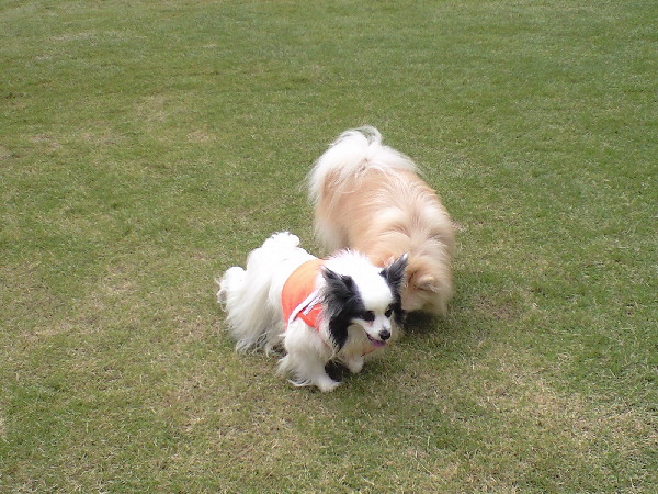 上の二枚の写真は楽しそうに一緒に遊んでいるように見えますが、実は毎度の事ながらパピはマイペースに一人でうろうろとしていただけなんです(笑)