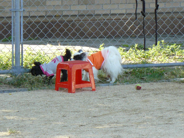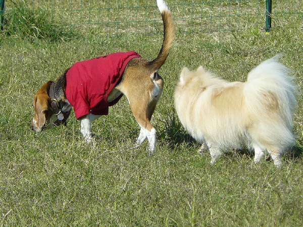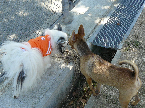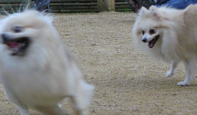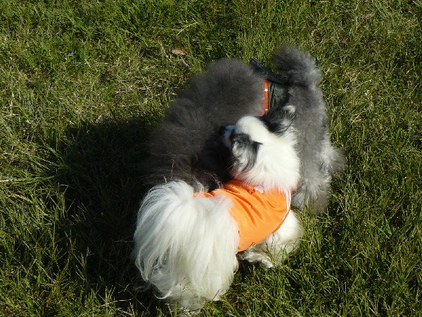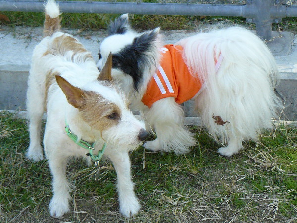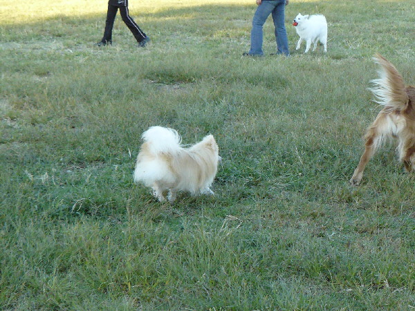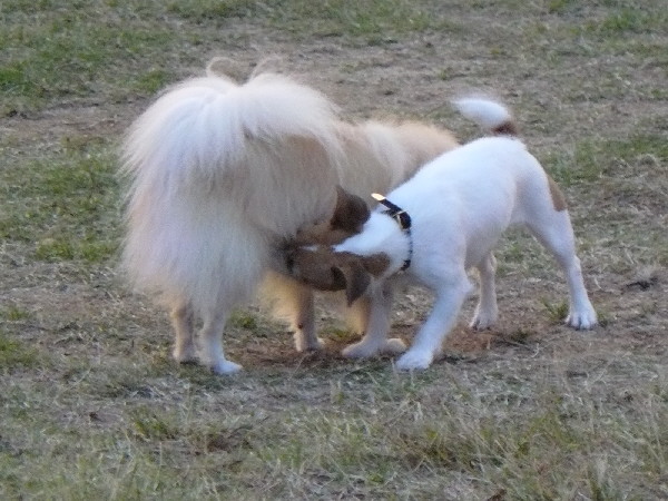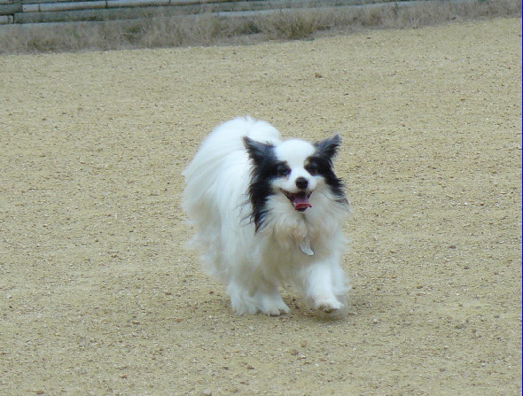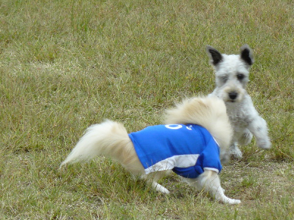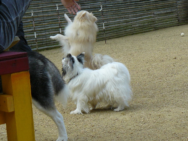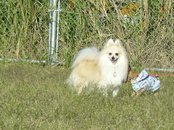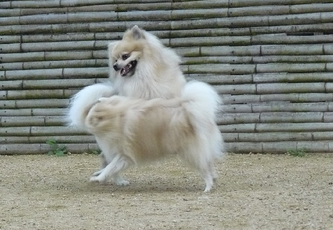 上の二枚の写真は楽しそうに一緒に遊んでいるように見えますが、実は毎度の事ながらパピはマイペースに一人でうろうろとしていただけなんです(笑)