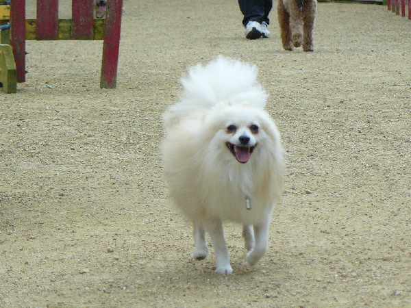 この日はパピヨンは2頭見ましたけど、今日はポメは来ないな~と思っていたら