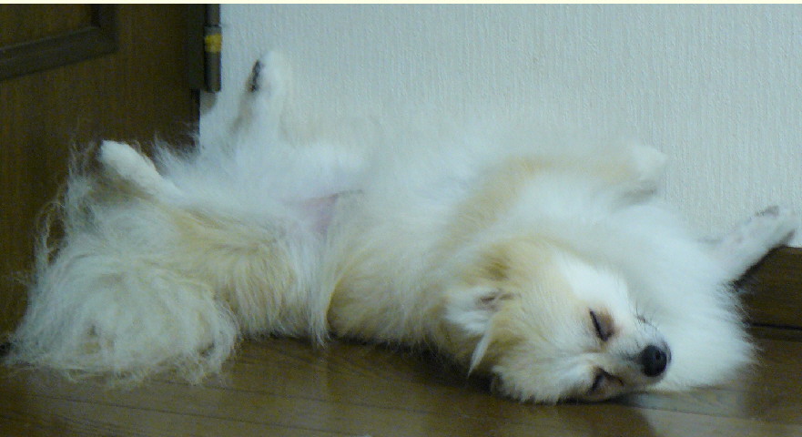 パピはいつも自分の横に来ると、こうしてお腹を見せます(^-^)