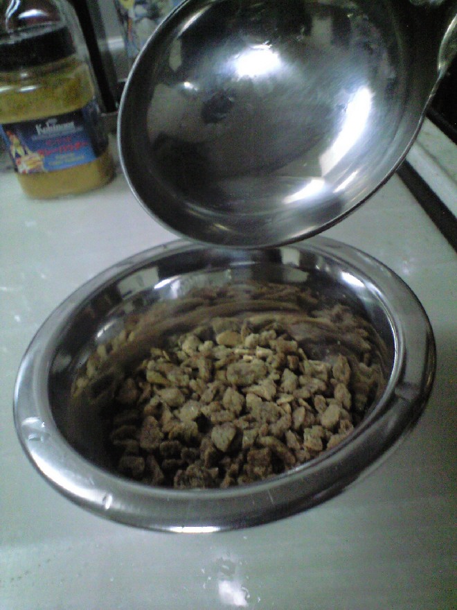 ほんとはお湯だけかけてフードの匂いを出そうかなとも思ってましたけど、折角の煮汁があるしこちらの方がいいかなと試したところビンゴでした(^-^)