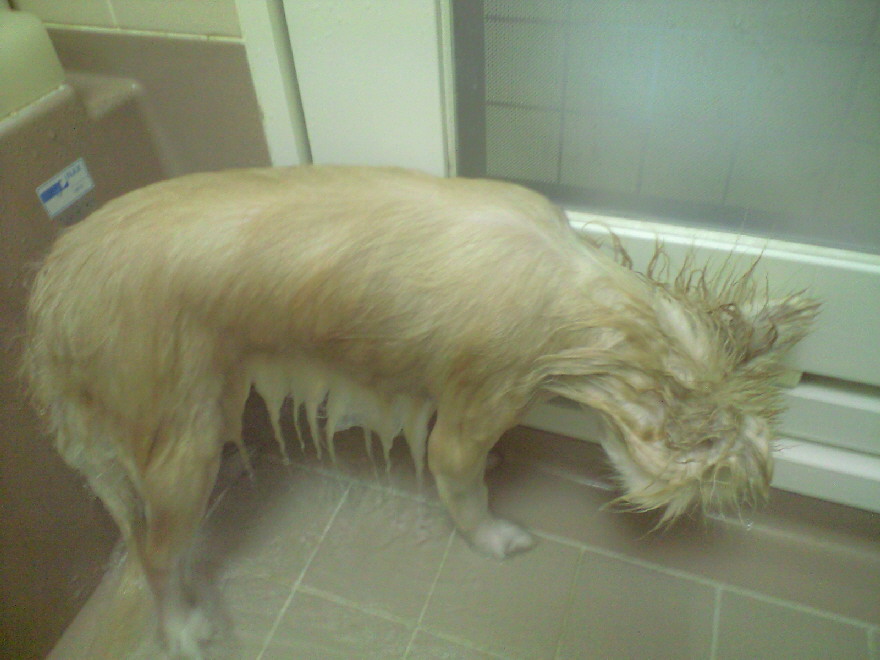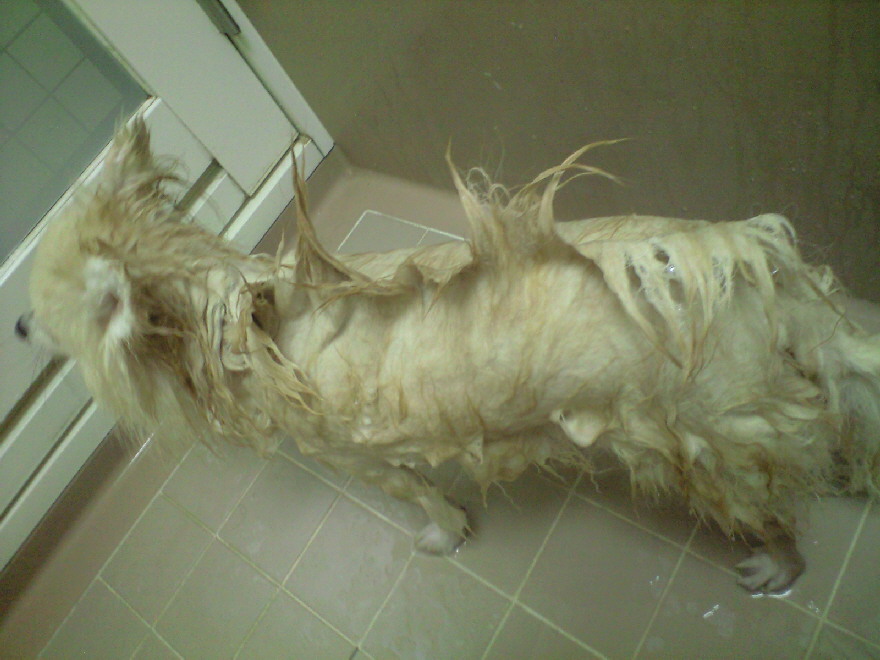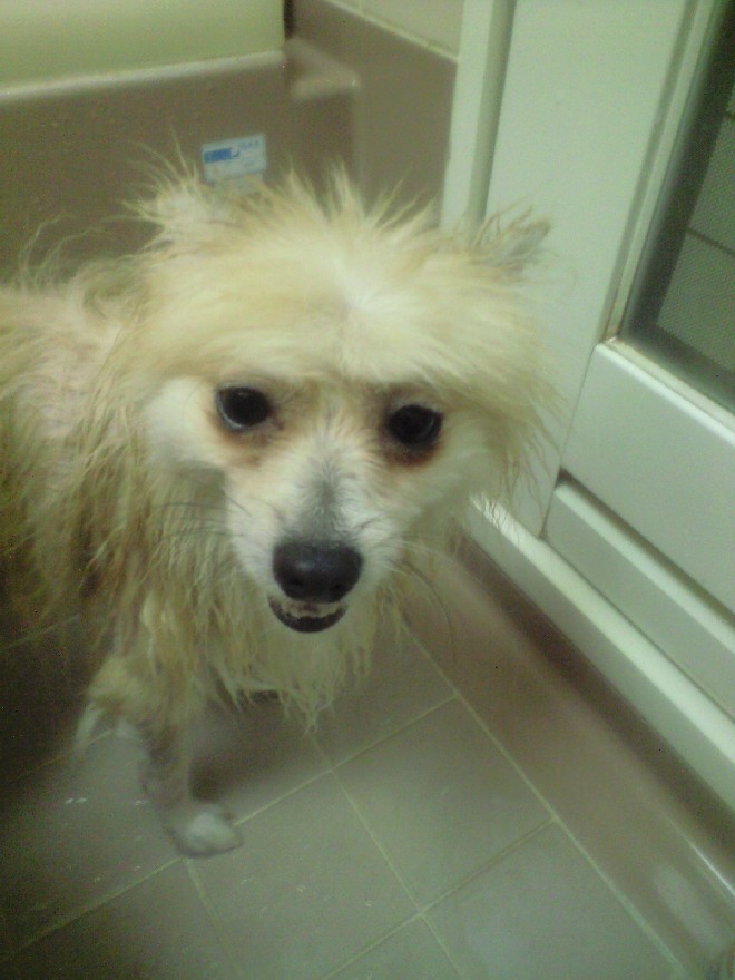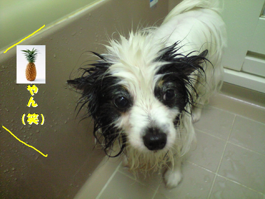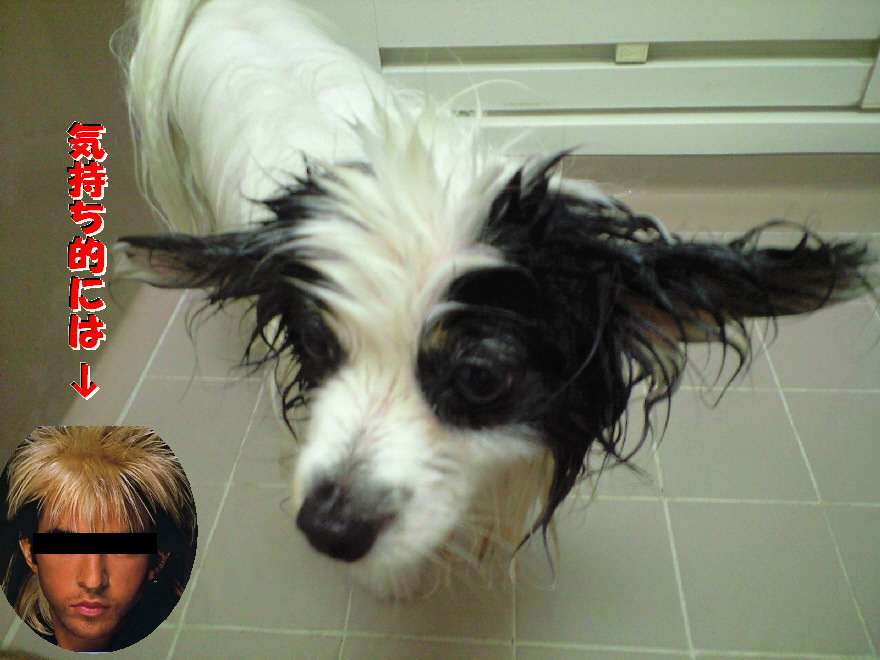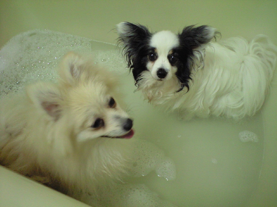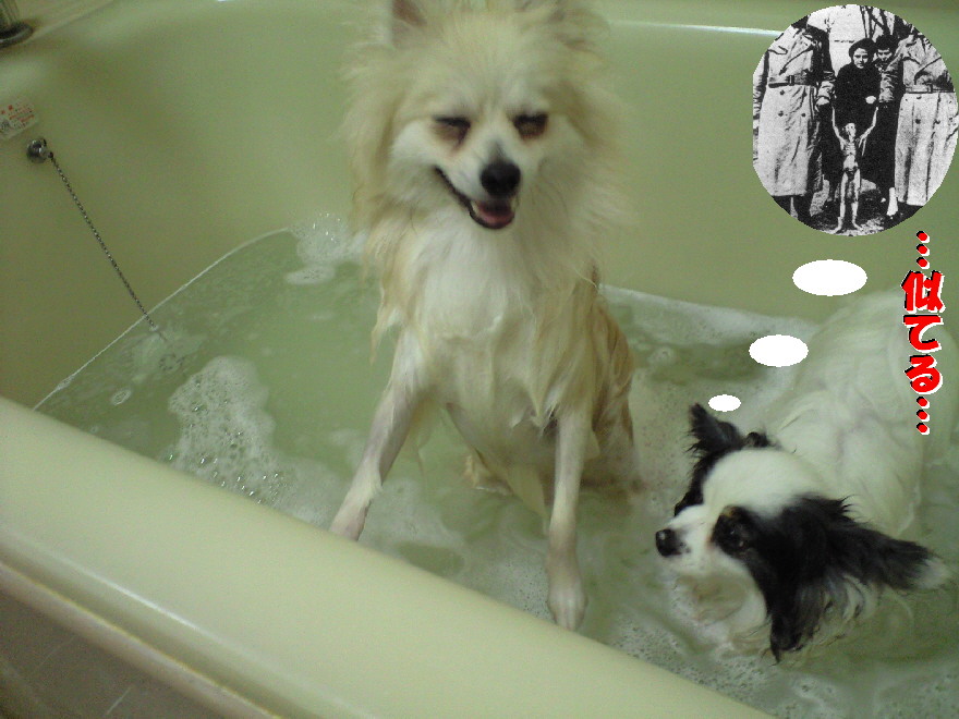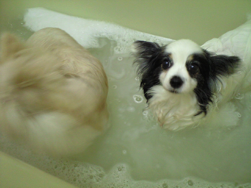 ジョンを湯船から出して洗っている時に、先日さるんばママさんがシャンプーネタ(←クリック)をしていたのを思い出したので、ちょっとうちもやってみました。