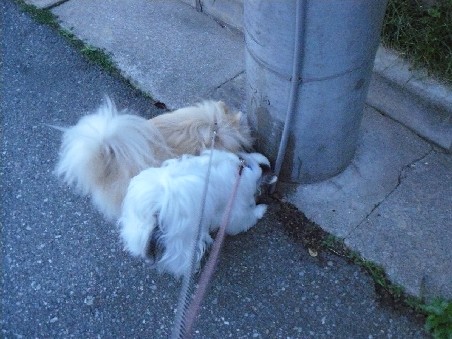 思えばパピを迎えて散歩に連れ出した当初は、全然他のワンコの匂いにも興味を示さなかったのに、今ではジョン以上に電柱にまっしぐらです(笑)