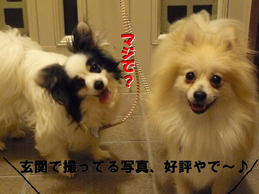 ジョンとパピを座らして撮りたかったけど、生憎リードを引っ掛けれる物がなかったので断念(>_<)