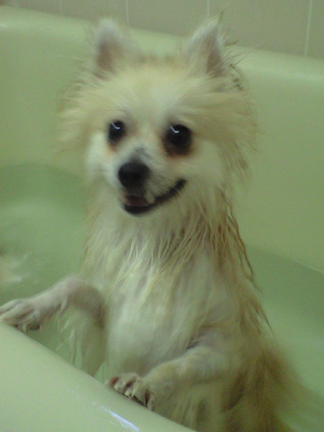 ジョンもパピもお風呂は嫌いですが、パピは観念しているのか比較的ジッとしてくれてます。