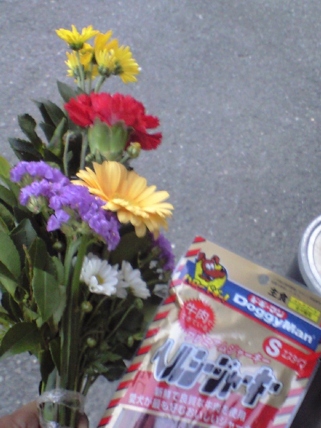 いつものお供えの花とおやつを売店で買って