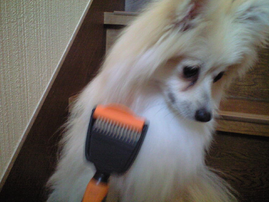 もともとはスリッカーを使ってアンダーコートの抜け毛を取っていましたけど、まだまだ抜け毛が多いしよく取れるとの評判のファーミ○ーターと同じ形状の刃(と言っていいのかな?)が付いているので買いました(安かったし)