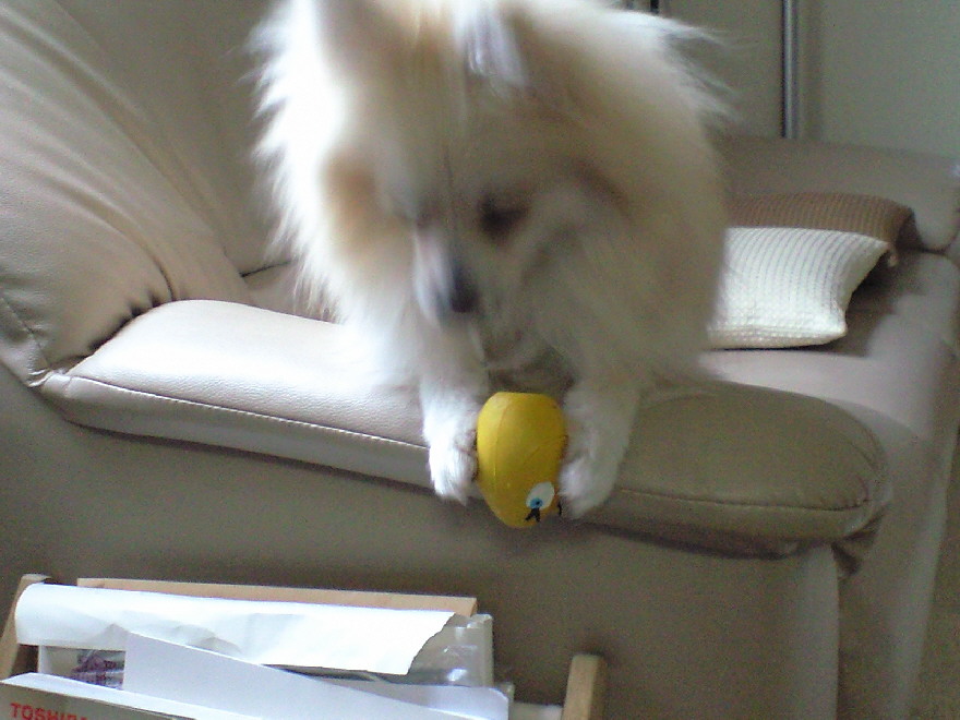 いつもの様にジョンはたまごちゃんを持ってきて投げてくれの催促。