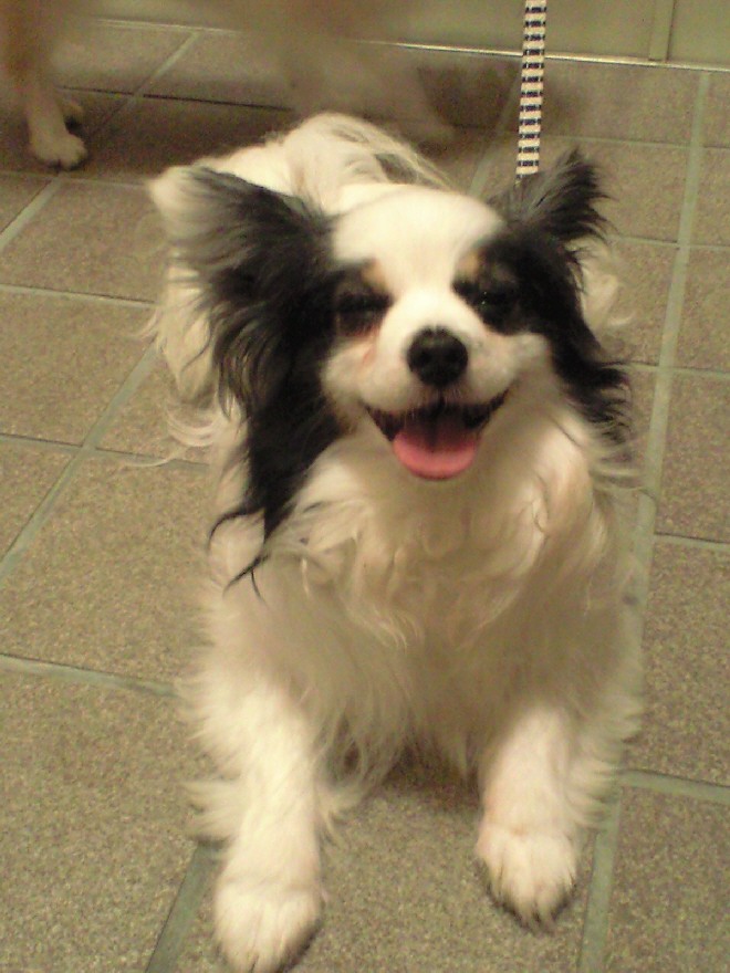 早速、ここの看板犬のパピヨンにご挨拶