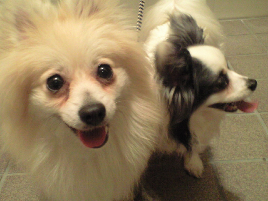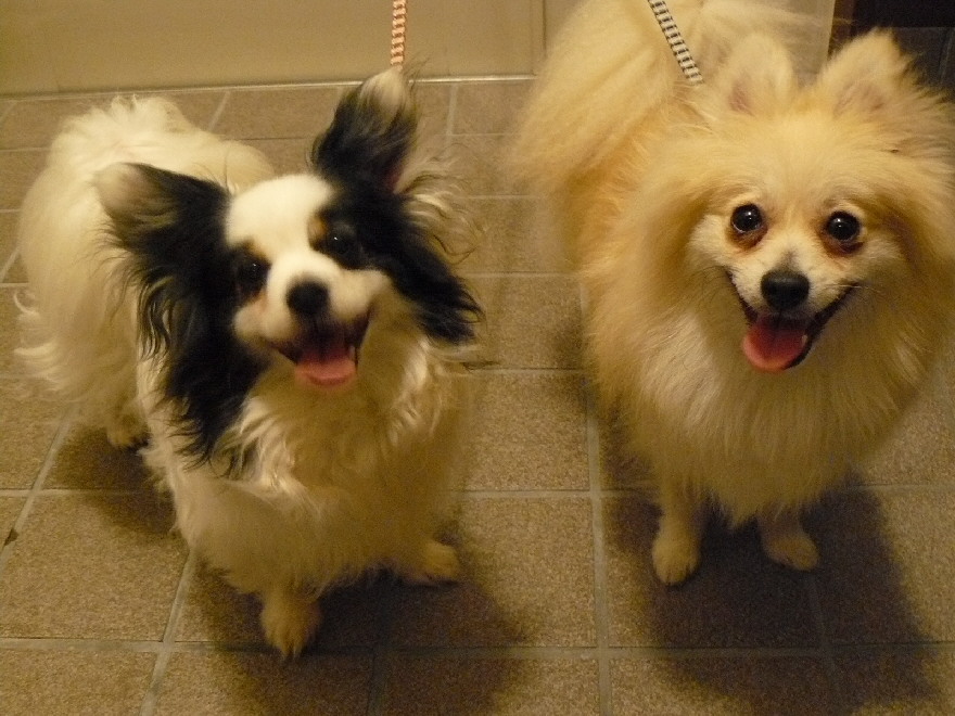 長時間歩いたのでちょっとバテ気味ですけど、満足気なジョンとパピです(^-^)