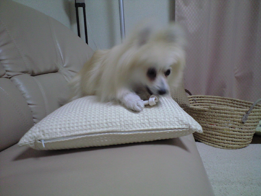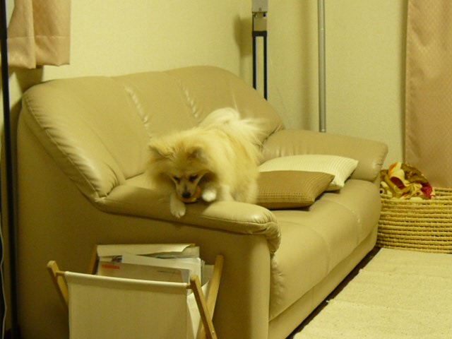 もうソファの肘掛でカミカミするなよっヽ(`Д´)ノ