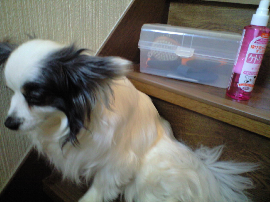 掃除が楽だし逃亡防止の為(笑)に、いつも階段でブラッシングをしています。