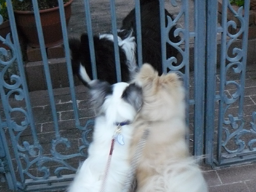 ジョンが行くと尻尾を振って寄ってきてくれるんですが、いつも門に(ジョンに向かって)おしっこをします(^^;)
