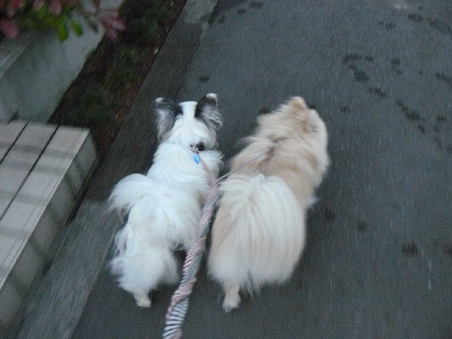 という訳で(笑)、今日は散歩に行けませんでしたので、昨夜散歩から帰ってきた様子↓