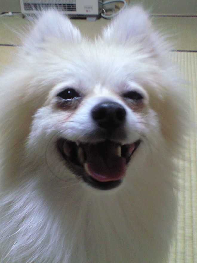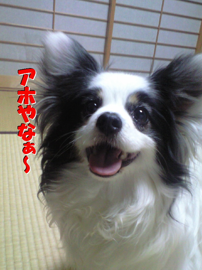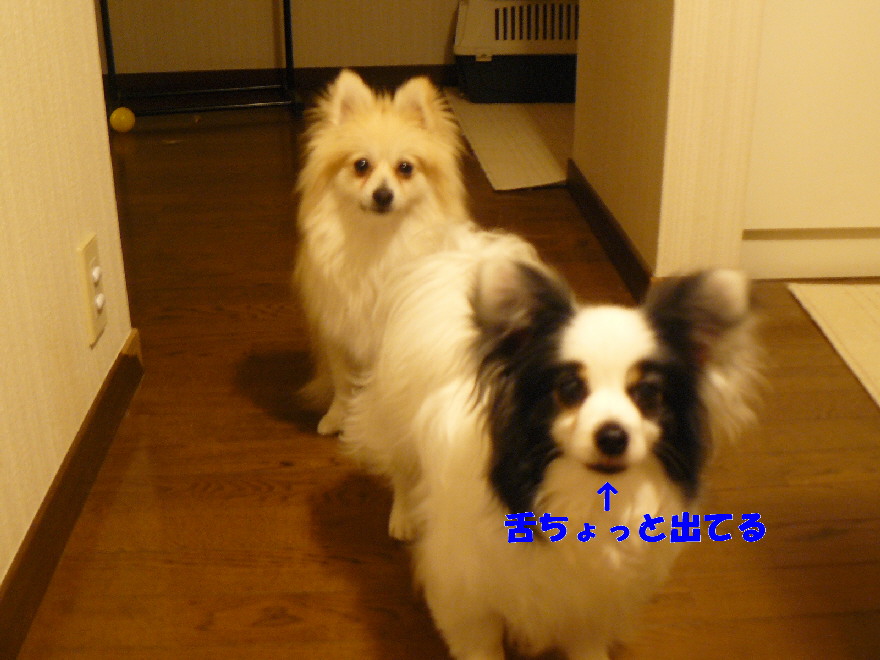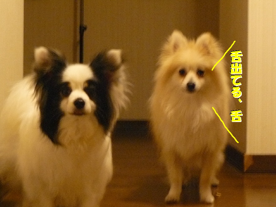 その度に「パピ、舌出てんで、舌」と言っても仕舞う事無くいつも首を傾げてます(萌)