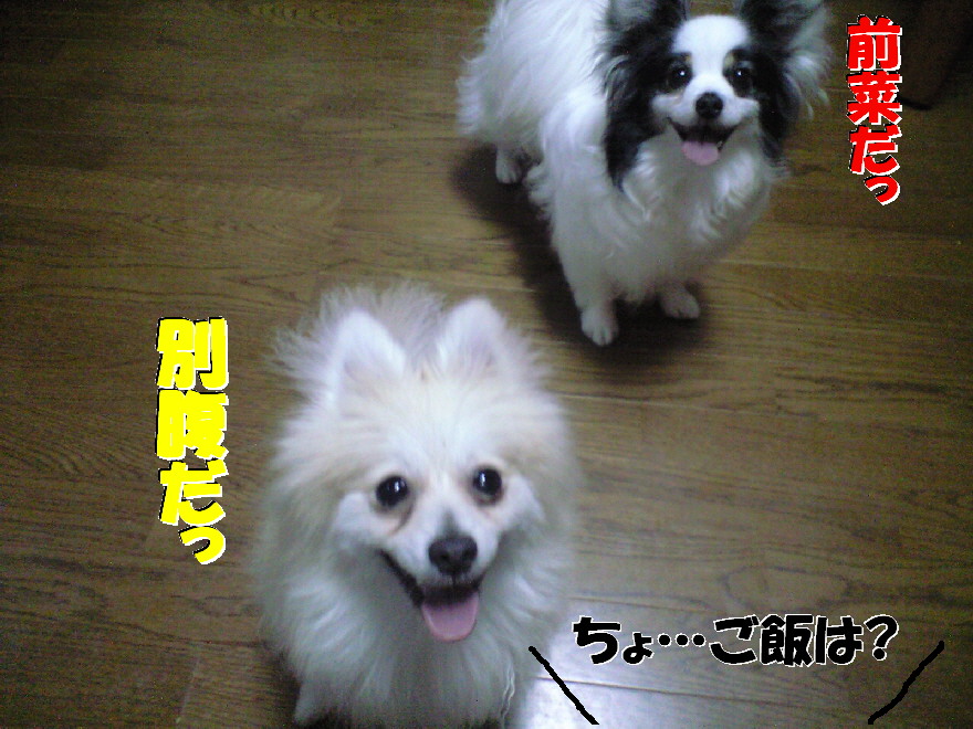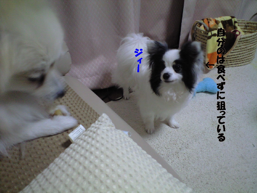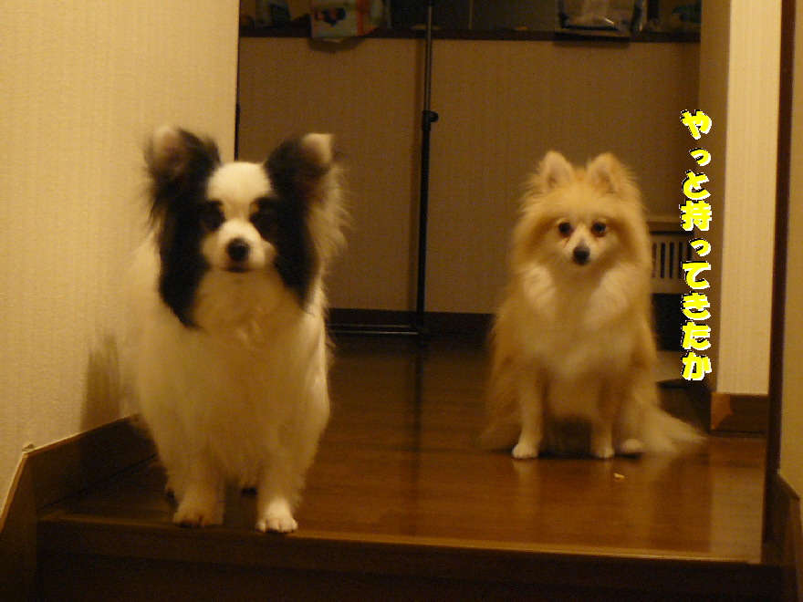 帰って買ってきた物を撮影していると、ジョンもパピもおやつが貰えると思い大はじゃぎ(^^;)
