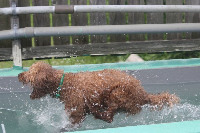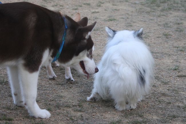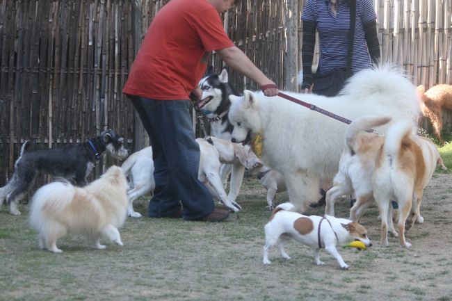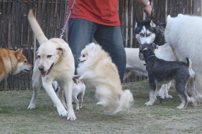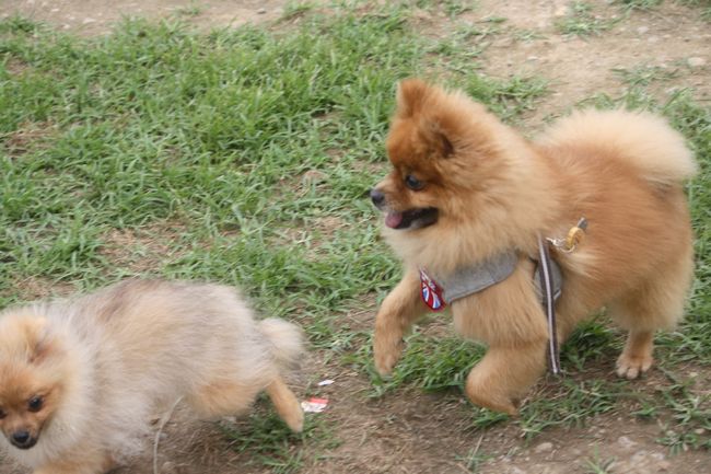 前記事にも書いた様に、日曜日も愛犬広場へ行ってきました。 この日はすでにポン太君、バレン君、ランビ君が来ていました。 挨拶もそこそこに一人ウロウロとするパピと、 入るなり、ランビ君に歓迎されるジョン(笑)