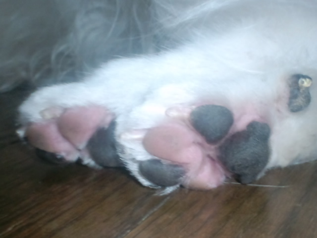 その場にいてた鼻が黒い子はパットも黒く、鼻の色素が薄い子は肉球も薄い色をしていました。
