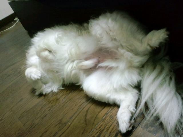 かと言って、うちはサマーカットはしない派なので、そろそろまたお腹周りの毛だけ短くして貰いに行きます。