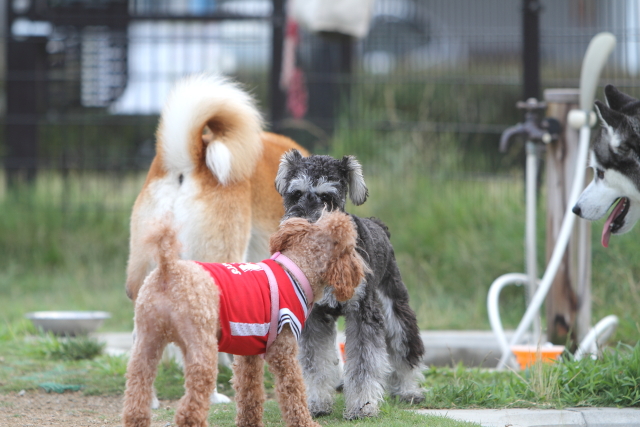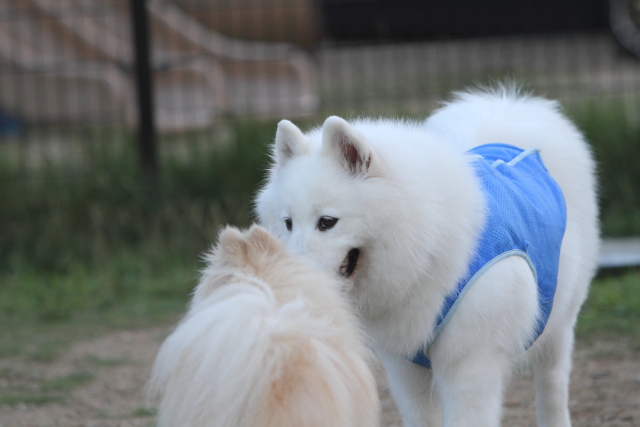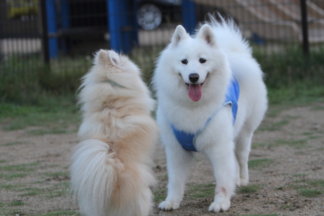 前までママさんの足元で大人しくほとんど動かなかったんだけど、少し前から何かに覚醒したようで(笑)ママさんの足元を離れ他のワンコに吠えるようになりした。